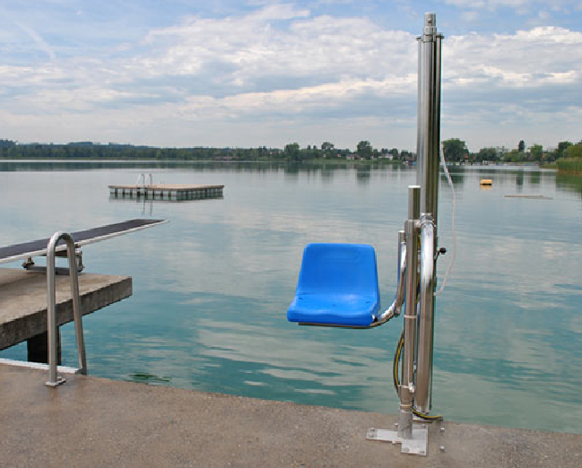 Fabricado em aço inoxidável 316, combina robustez com linhas elegantes. Perfeito para piscinas privadas, instalações públicas e até mesmo instalações em lagos ou bacias naturais. O elevador pode ser removido sem o uso de ferramentas. As rodas de transporte opcionais são ideais para a relocação sazonal.
