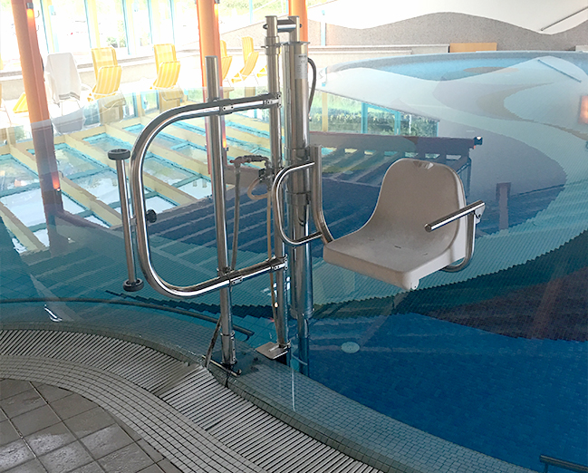 O Elevador para Piscina Stannah permite que você entre e saia da piscina sem ajuda, graças ao seu funcionamento simples e independente.